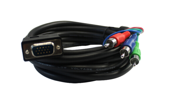 下圖是丹諾電子標(biāo)配的色差分量線,一端和VGA接口外觀是一樣,為15針D型頭,但不要誤以為就是VGA接口,其傳輸信號(hào)色差分量,并非VGA接口所用的RGB信號(hào)!